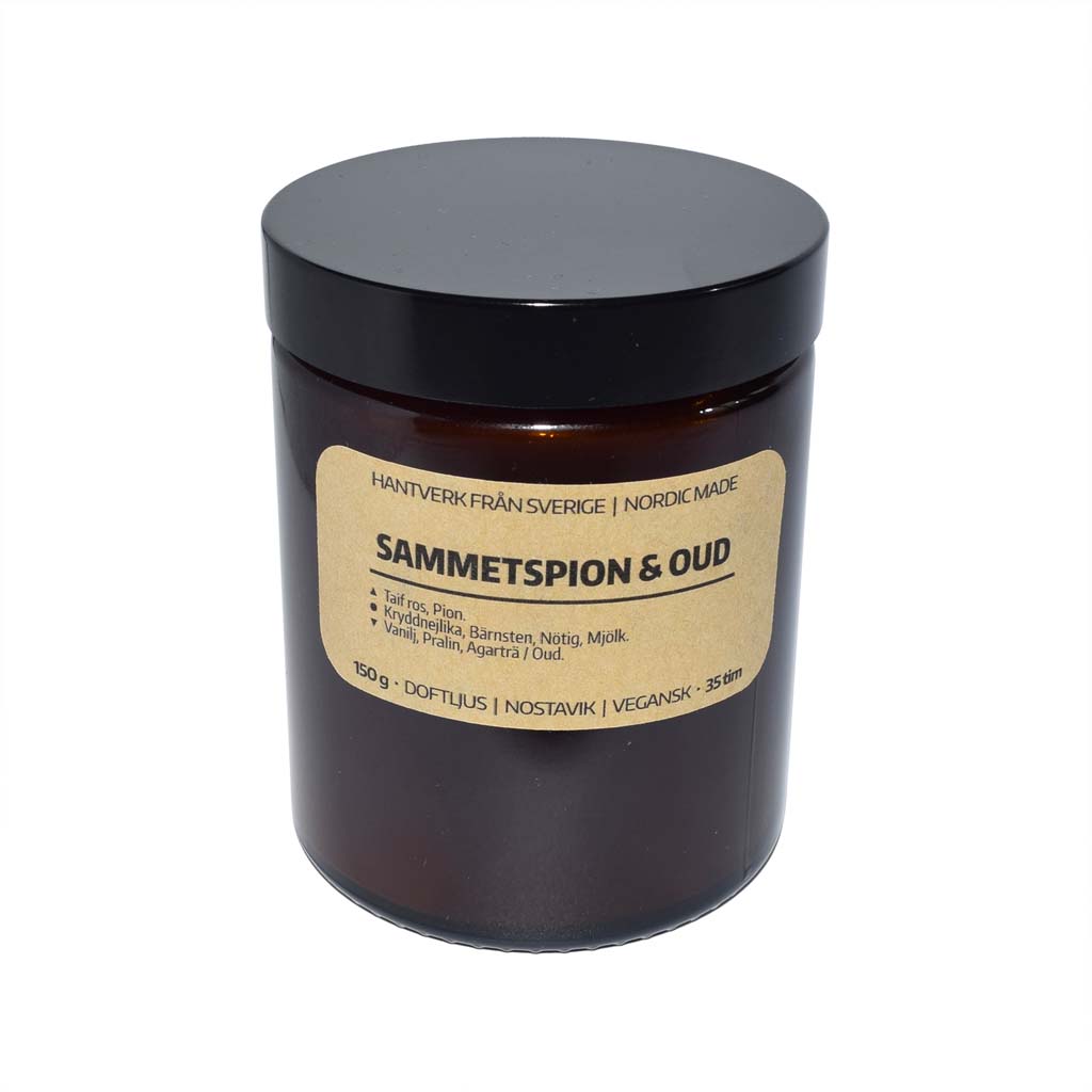 Sammetspion & Oud - en lyxig doft med ros och mjuka krydd- och nöttoner, omsluten av subtil, förförisk charm. Till stunder då du vill sjunka in i lugn och njutning eller när du vill ge en omtänksam, minnesvärd gåva.