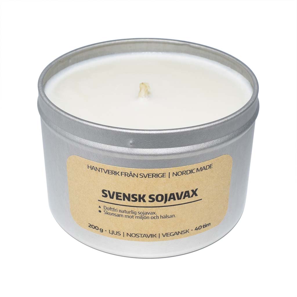 Doftfritt svenskt sojavaxljus, 100% naturligt och ett hälsosammare alternativ till petroleum-baserat paraffin och animaliskt stearin.